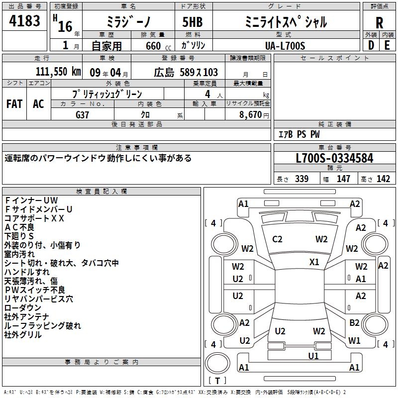 DAIHATSU MIRA GINO MINILITE SPECIAL - лот 4183
