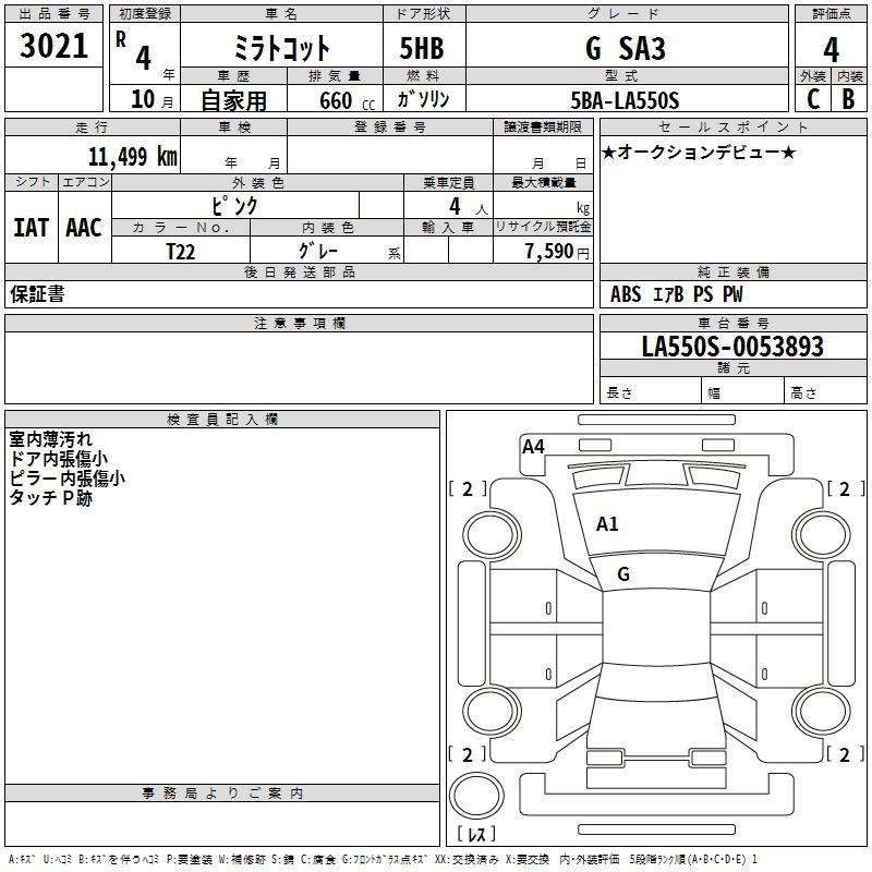 DAIHATSU MIRA TOCOT - лот 3021