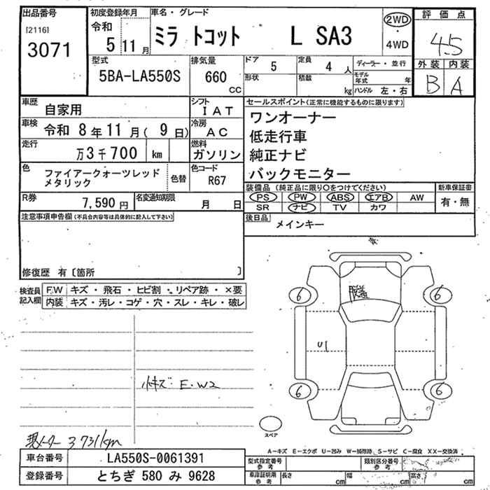 DAIHATSU MIRA TOCOT L SA3 - лот 3071