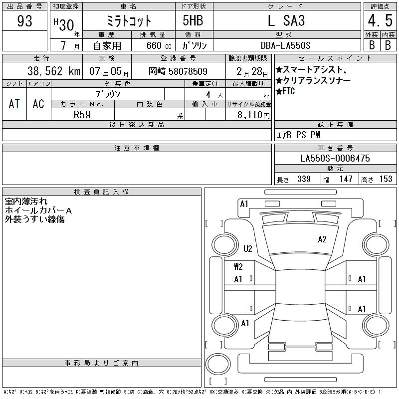 DAIHATSU MIRA TOCOT L SA3 - лот 93