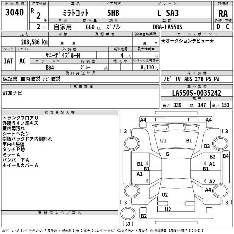 DAIHATSU MIRA TOCOT L SA3 - лот 3040