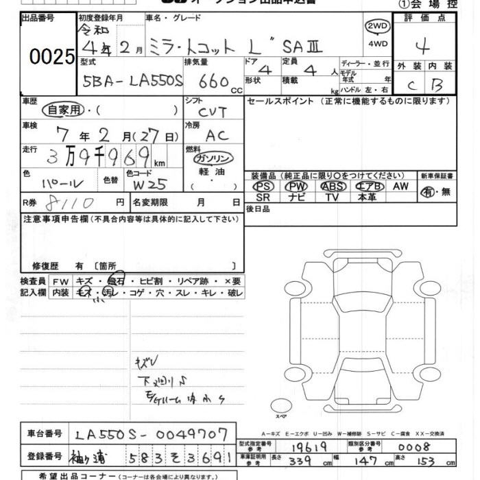 DAIHATSU MIRA TOCOT L SA3 - лот 25