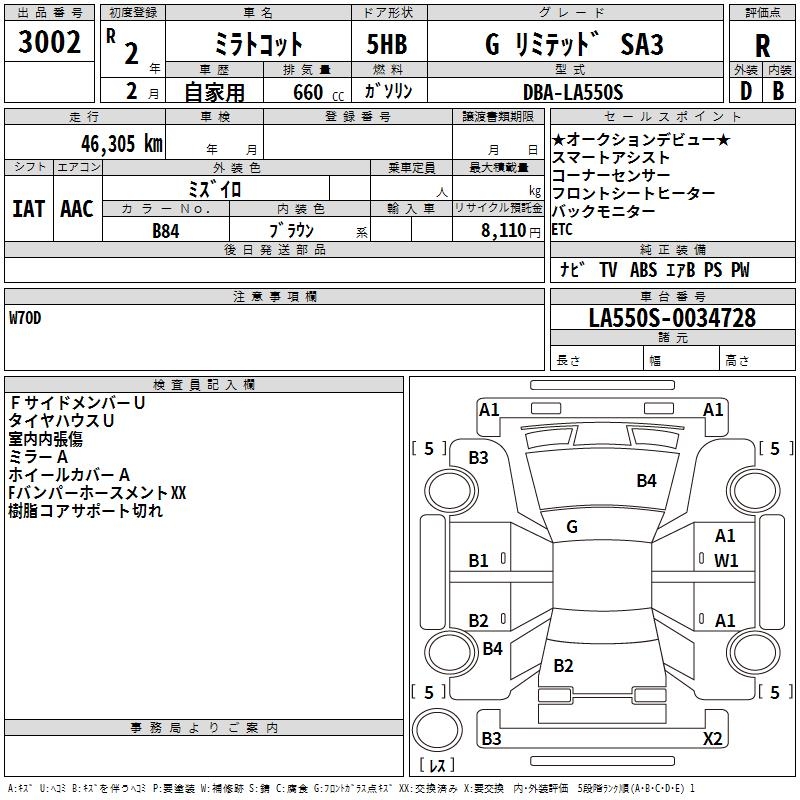 DAIHATSU MIRA TOCOT G LIMITED SA3 - лот 3002