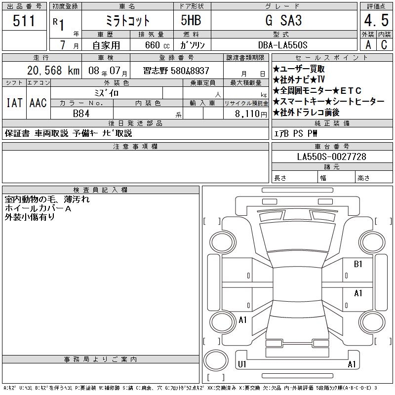 DAIHATSU MIRA TOCOT G SA3 - лот 511