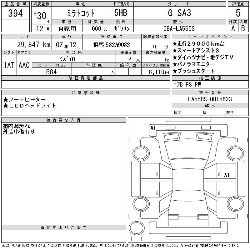 DAIHATSU MIRA TOCOT G SA3 - лот 394