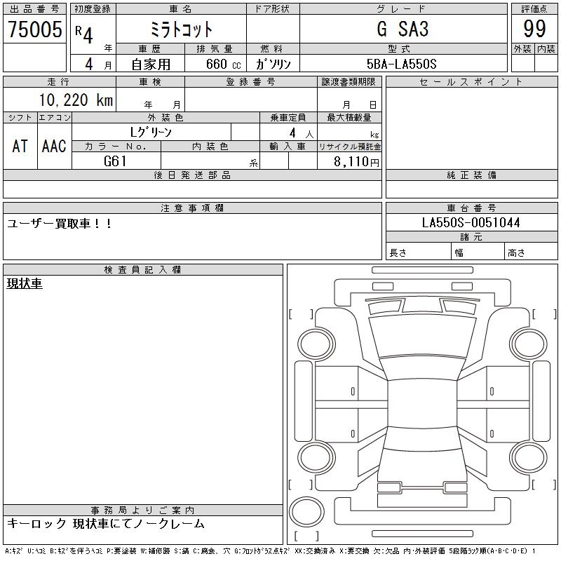 DAIHATSU MIRA TOCOT G SA3 - лот 75005