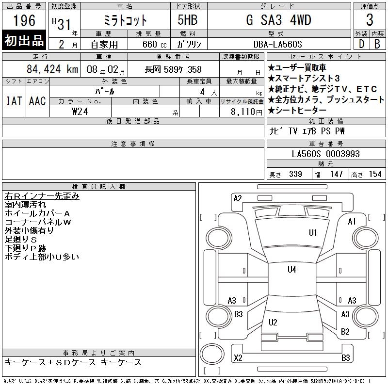 DAIHATSU MIRA TOCOT G SA3 4WD - лот 196