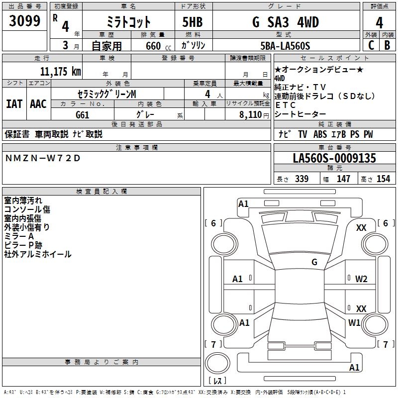 DAIHATSU MIRA TOCOT G SA3 4WD - лот 3099