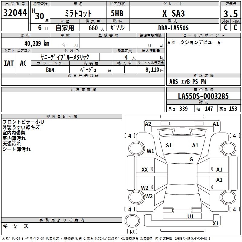 DAIHATSU MIRA TOCOT X SA3 - лот 32044