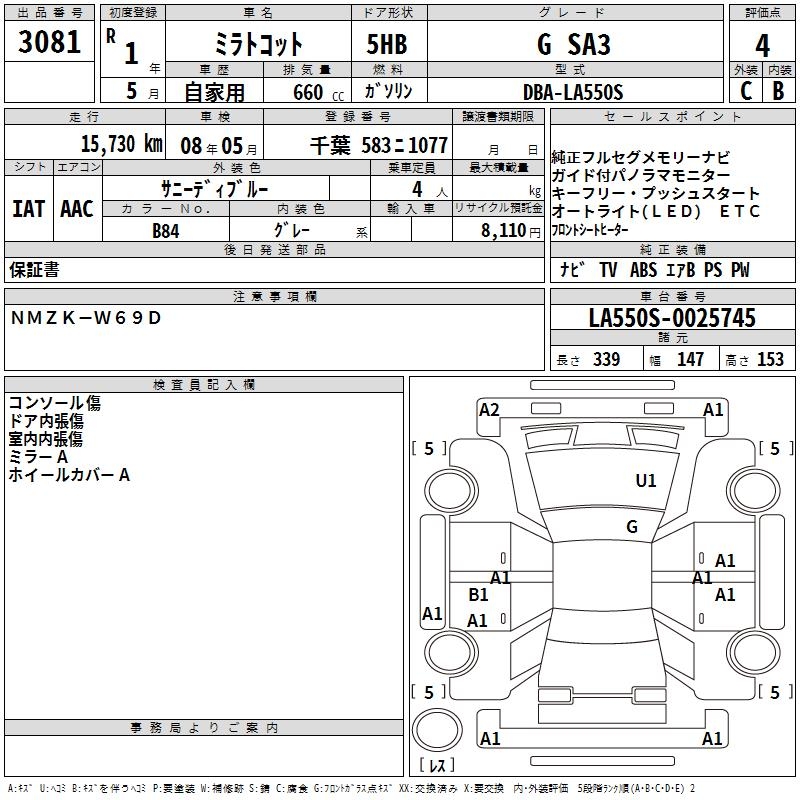 DAIHATSU MIRA TOCOT G SA3 - лот 3081