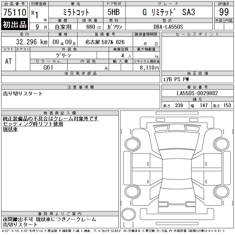 DAIHATSU MIRA TOCOT G LIMITED SA3 - лот 75110