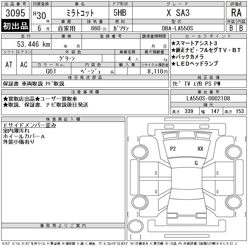 DAIHATSU MIRA TOCOT X SA3 - лот 3095