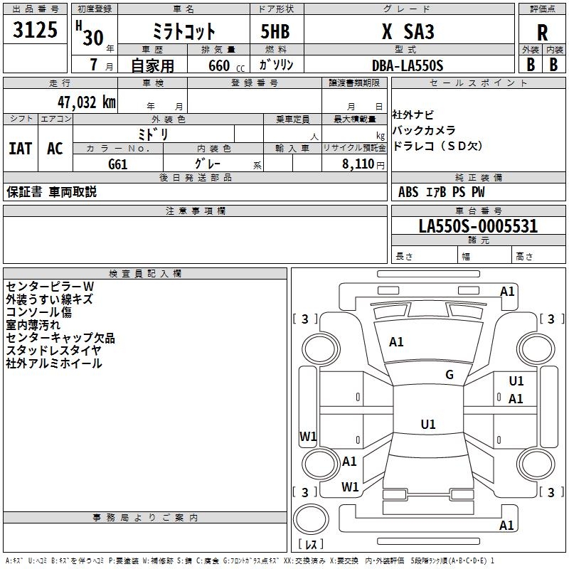 DAIHATSU MIRA TOCOT X SA3 - лот 3125