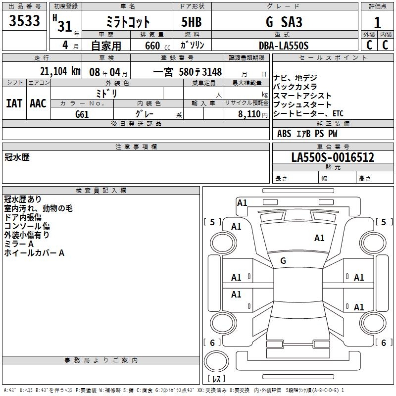 DAIHATSU MIRA TOCOT G SA3 - лот 3533