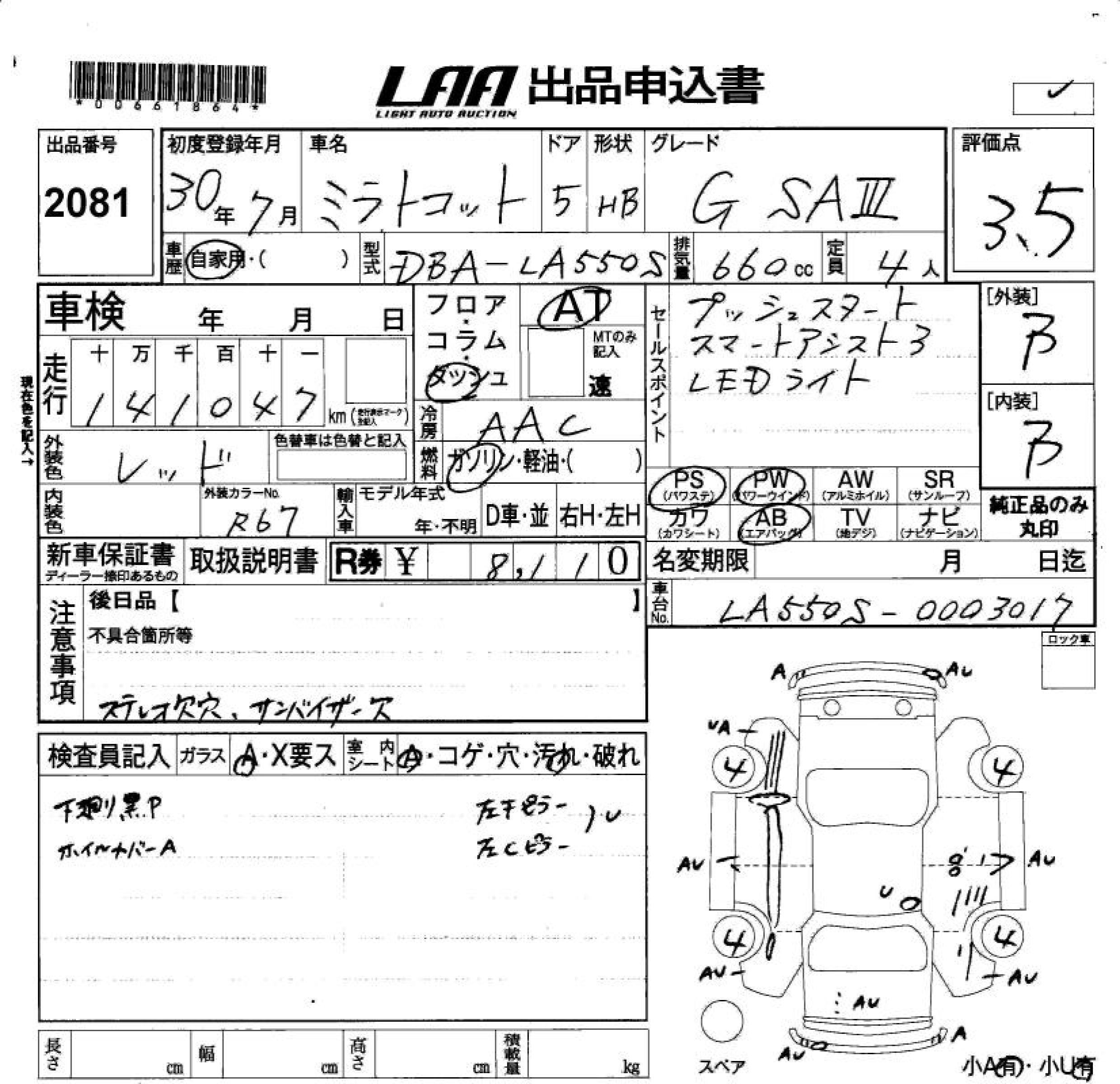DAIHATSU MIRA TOCOT G SA. - лот 2081