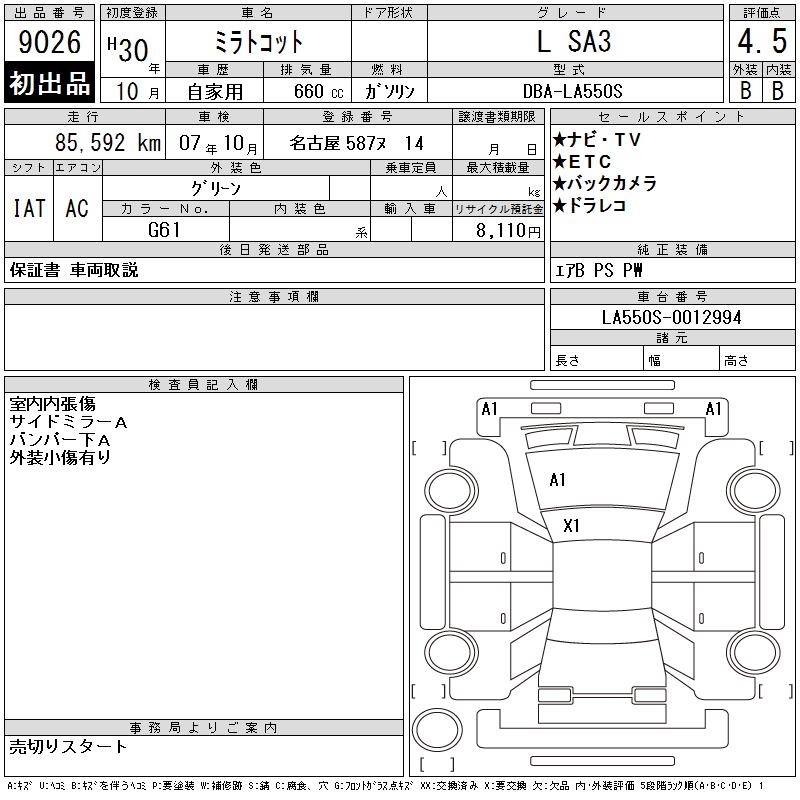 DAIHATSU MIRA TOCOT L SA3 - лот 9026