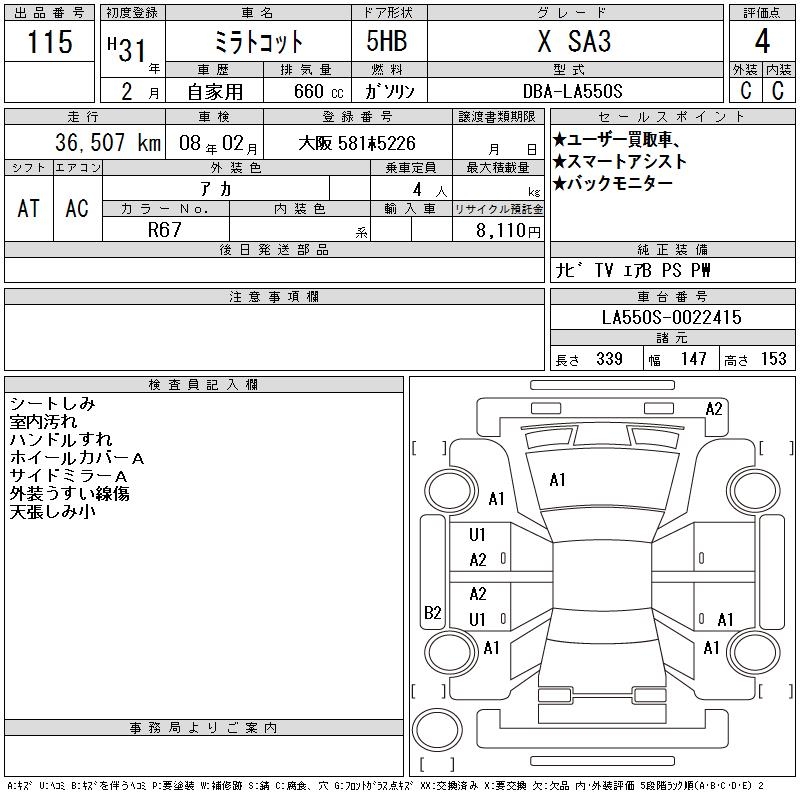 DAIHATSU MIRA TOCOT X SA3 - лот 115