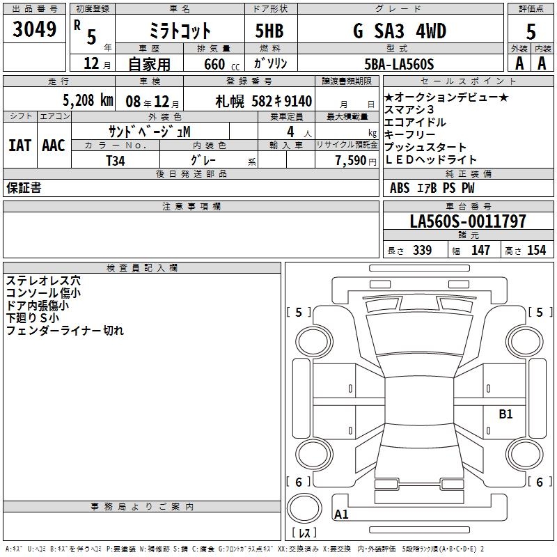 DAIHATSU MIRA TOCOT G SA3 4WD - лот 3049