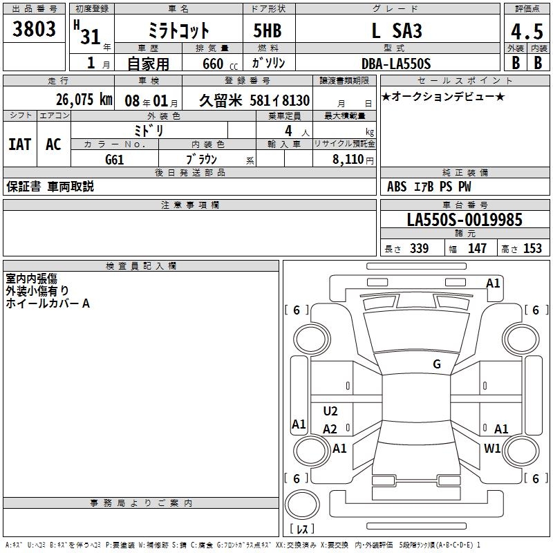 DAIHATSU MIRA TOCOT L SA3 - лот 3803