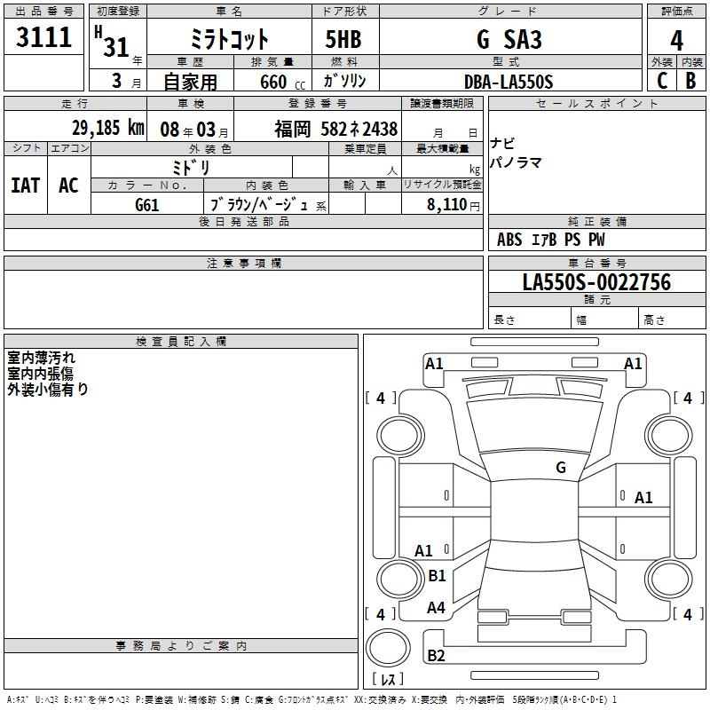 DAIHATSU MIRA TOCOT G SA3 - лот 3111