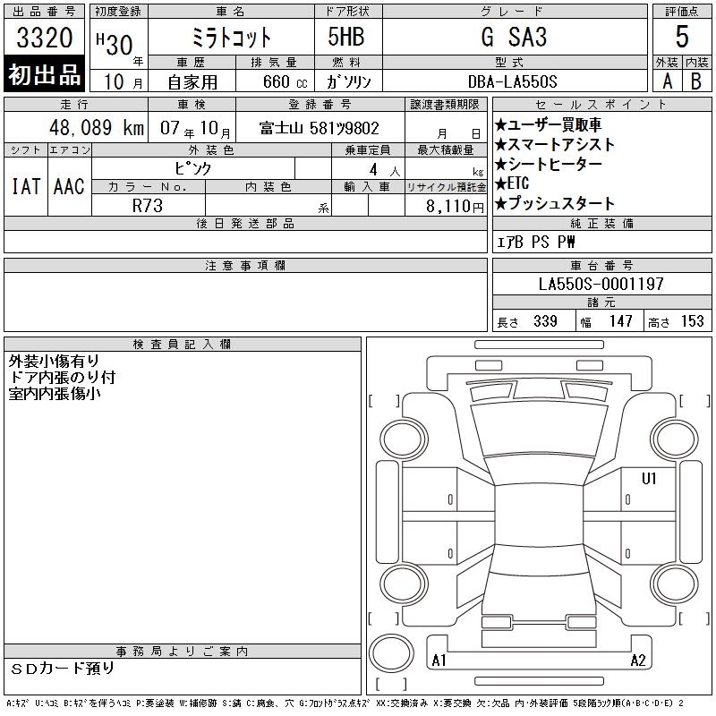 DAIHATSU MIRA TOCOT G SA3 - лот 3320