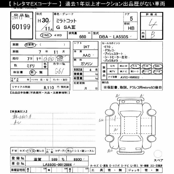 DAIHATSU MIRA TOCOT G SA3 - лот 60199