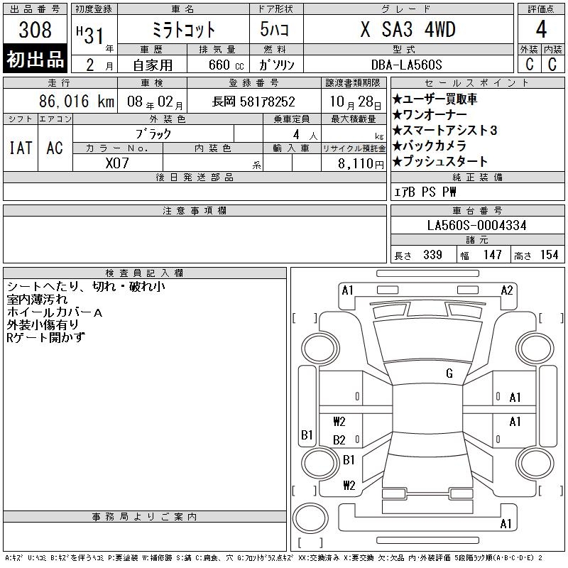DAIHATSU MIRA TOCOT X SA3 4WD - лот 308