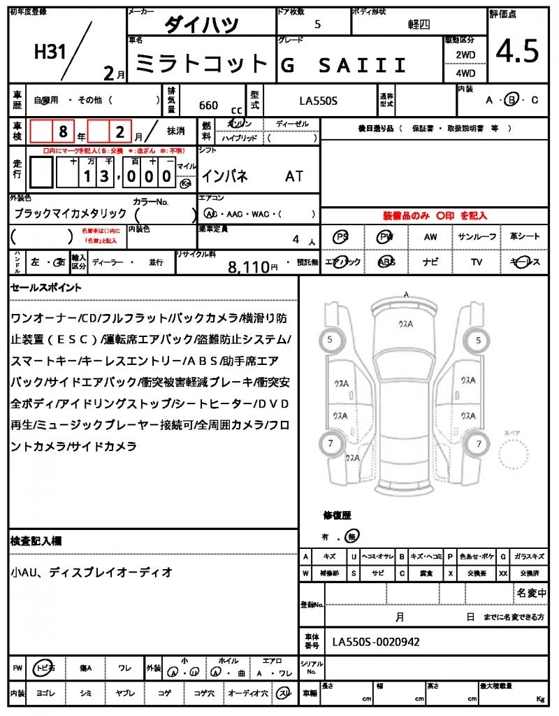 Все аукционы DAIHATSU MIRA TOCOT