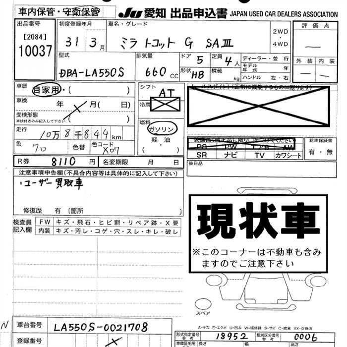 Все аукционы DAIHATSU MIRA TOCOT