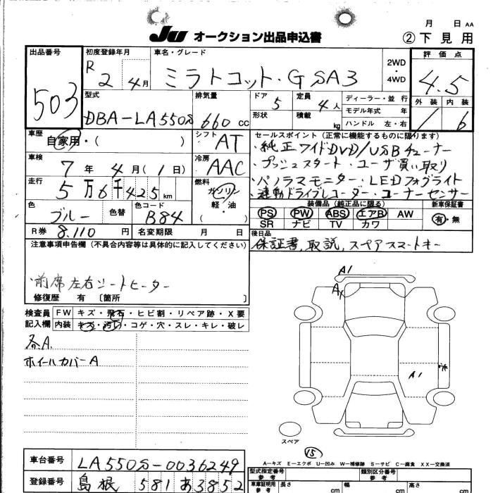 Все аукционы DAIHATSU MIRA TOCOT