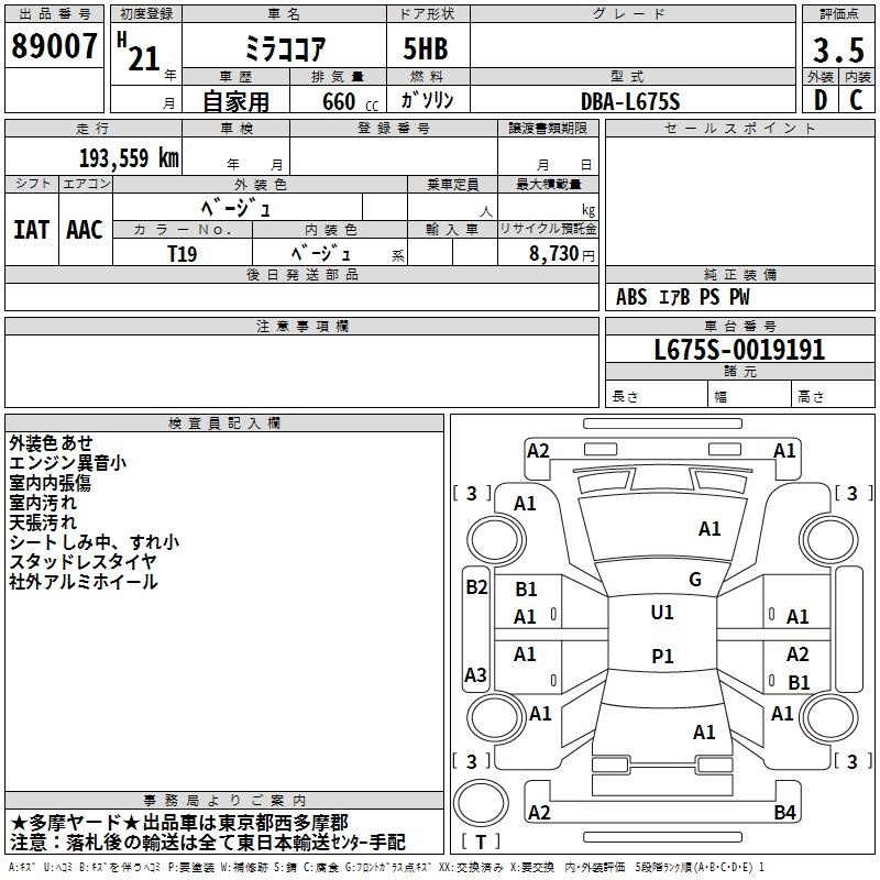 DAIHATSU MIRA COCOA - лот 89007