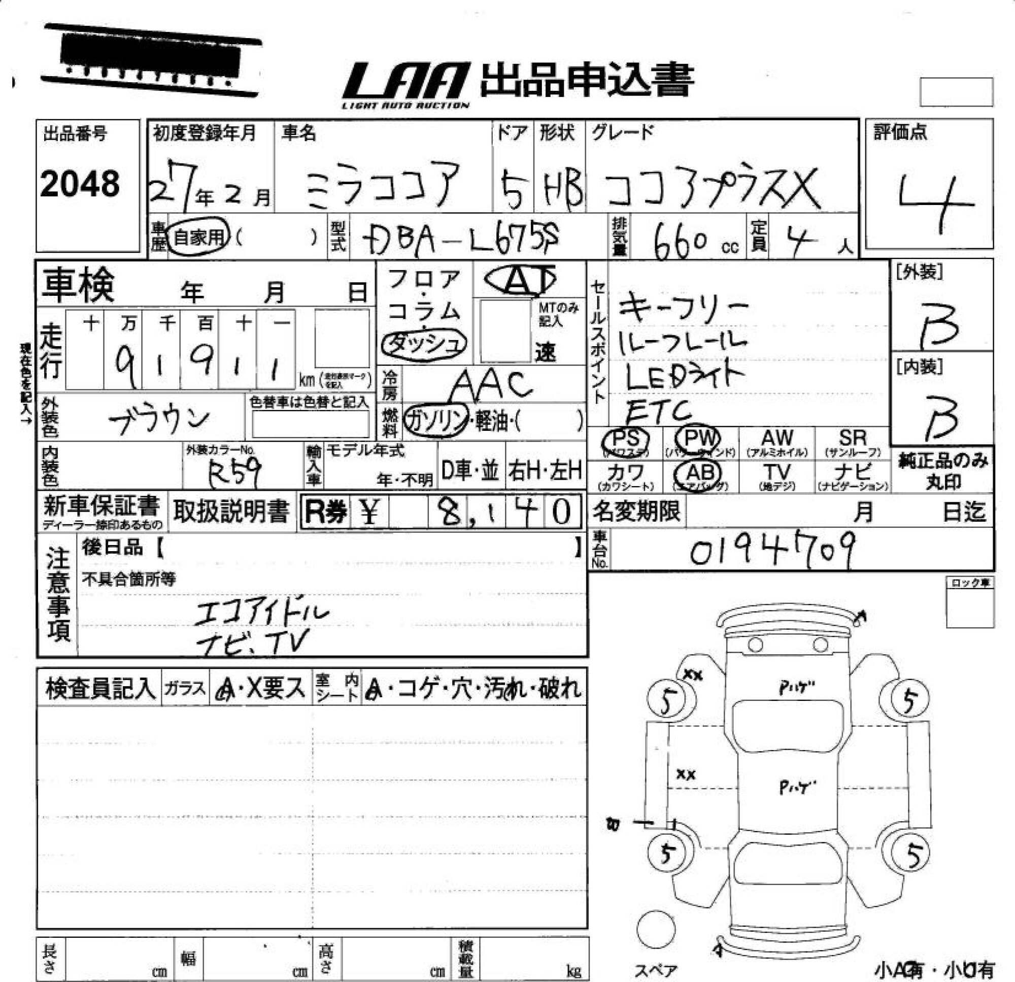 DAIHATSU MIRA COCOA - лот 2048