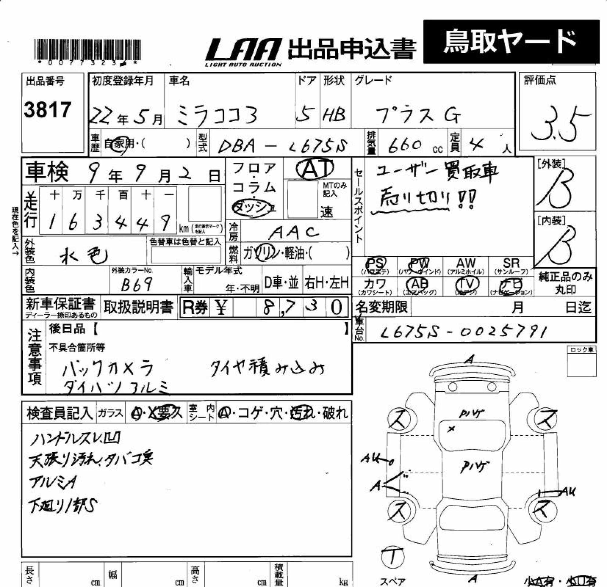 DAIHATSU MIRA COCOA - лот 3817