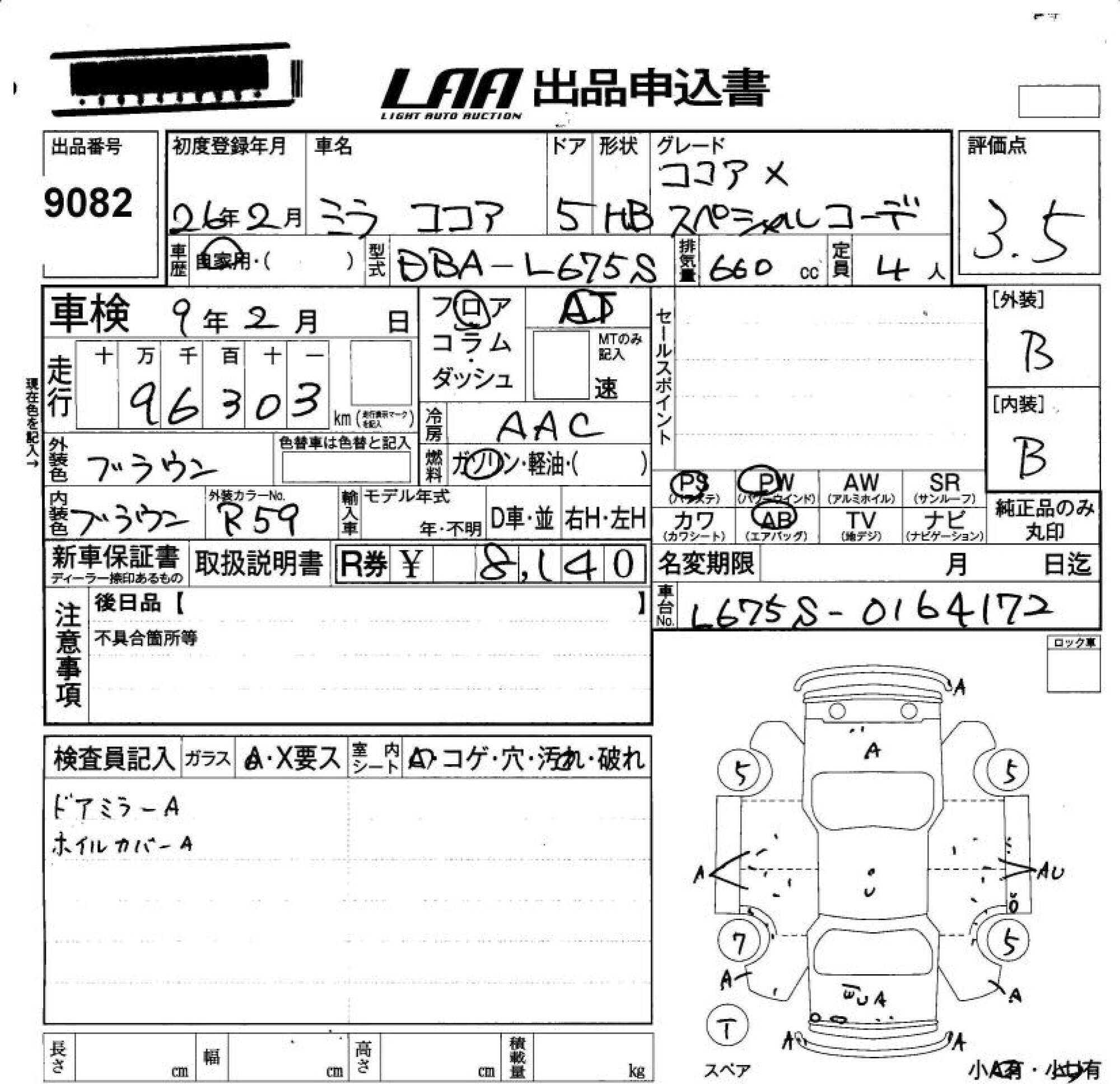 DAIHATSU MIRA COCOA - лот 9082
