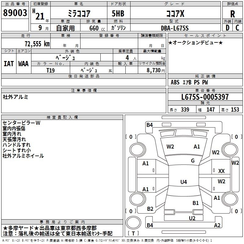 DAIHATSU MIRA COCOA - лот 89003