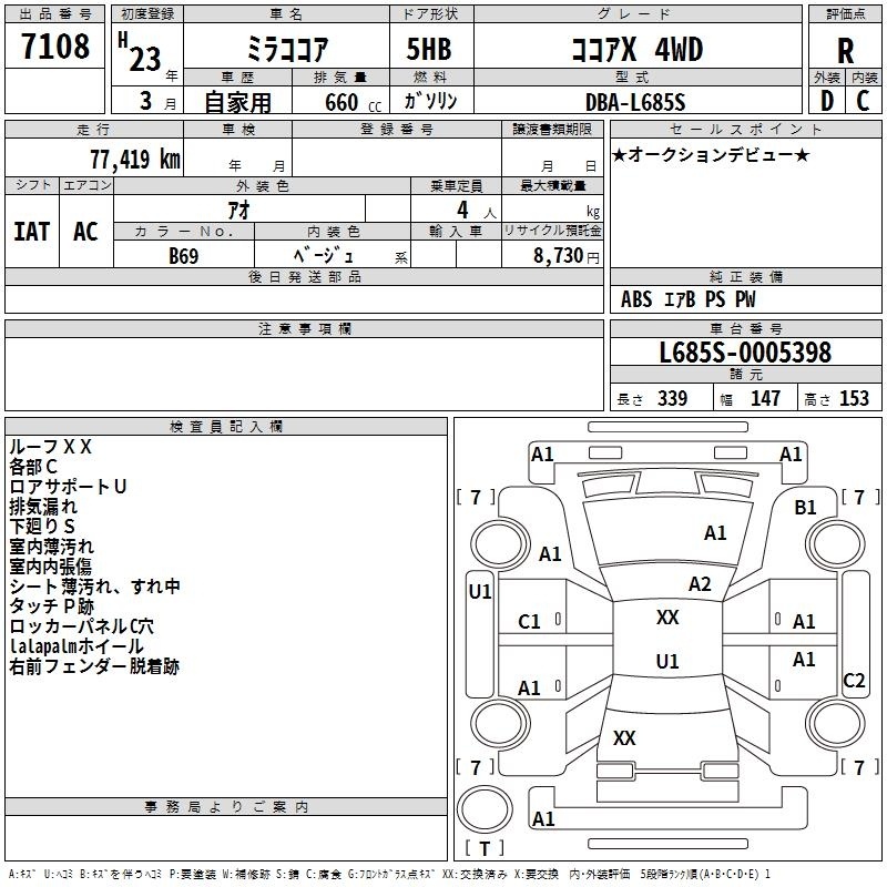 Все аукционы DAIHATSU MIRA COCOA