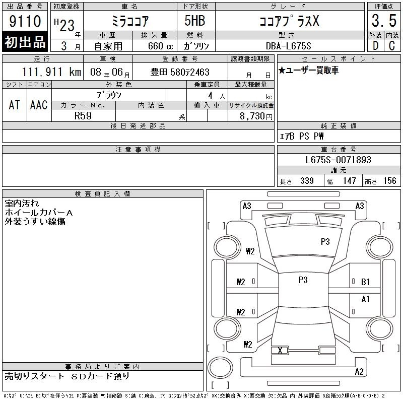DAIHATSU MIRA COCOA - лот 9110