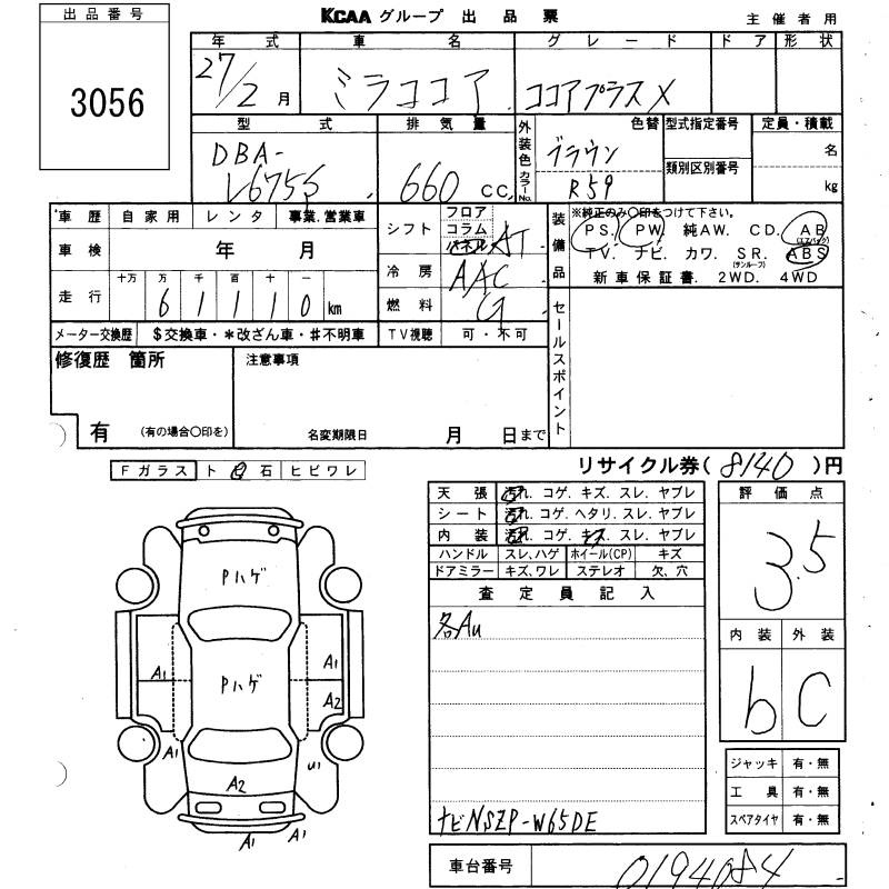 DAIHATSU MIRA COCOA - лот 3056