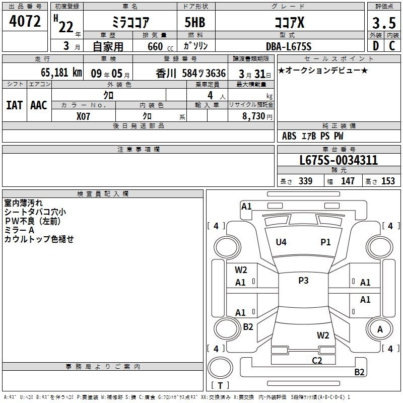 DAIHATSU MIRA COCOA - лот 4072