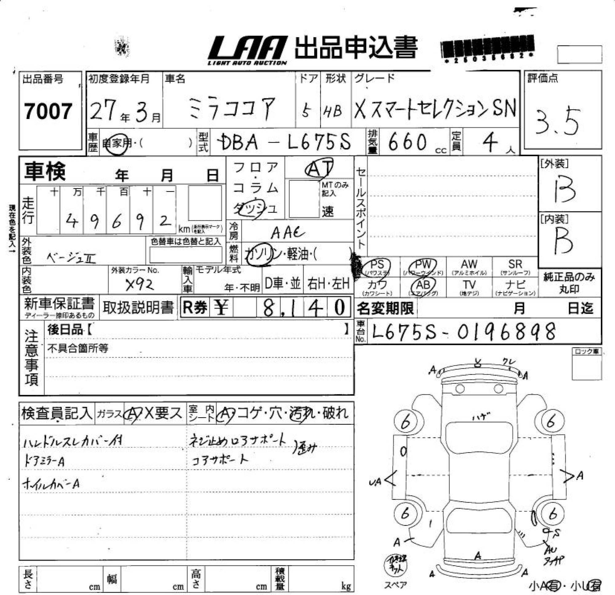 DAIHATSU MIRA COCOA - лот 7007