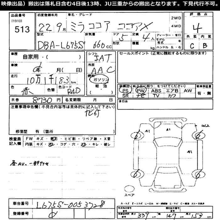 DAIHATSU MIRA COCOA - лот 513