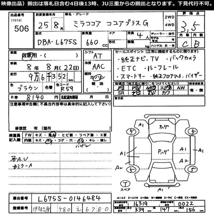 DAIHATSU MIRA COCOA - лот 506
