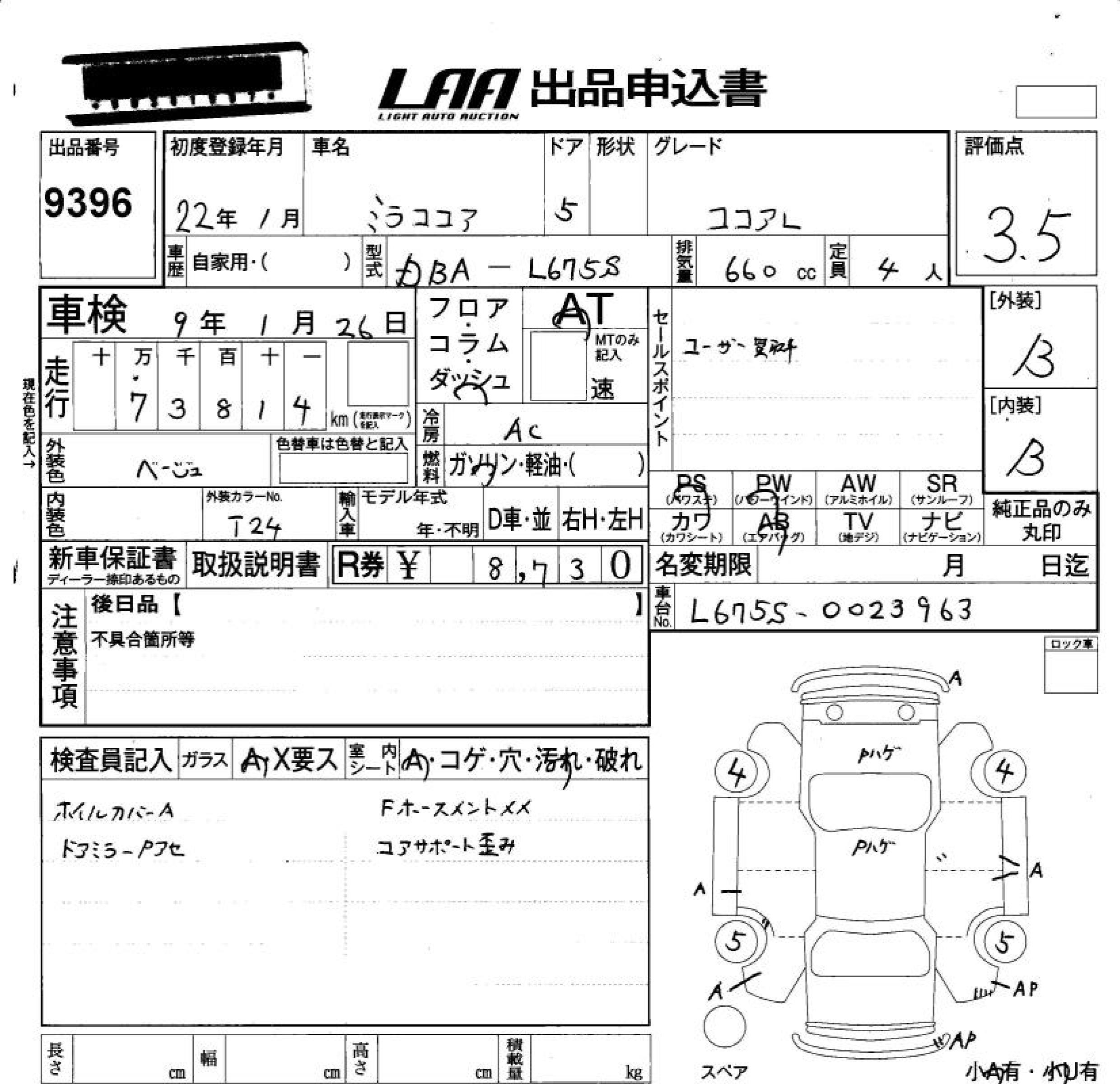 DAIHATSU MIRA COCOA - лот 9396