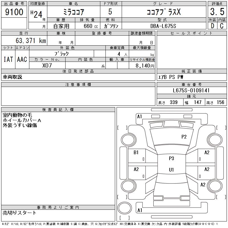 DAIHATSU MIRA COCOA - лот 9100