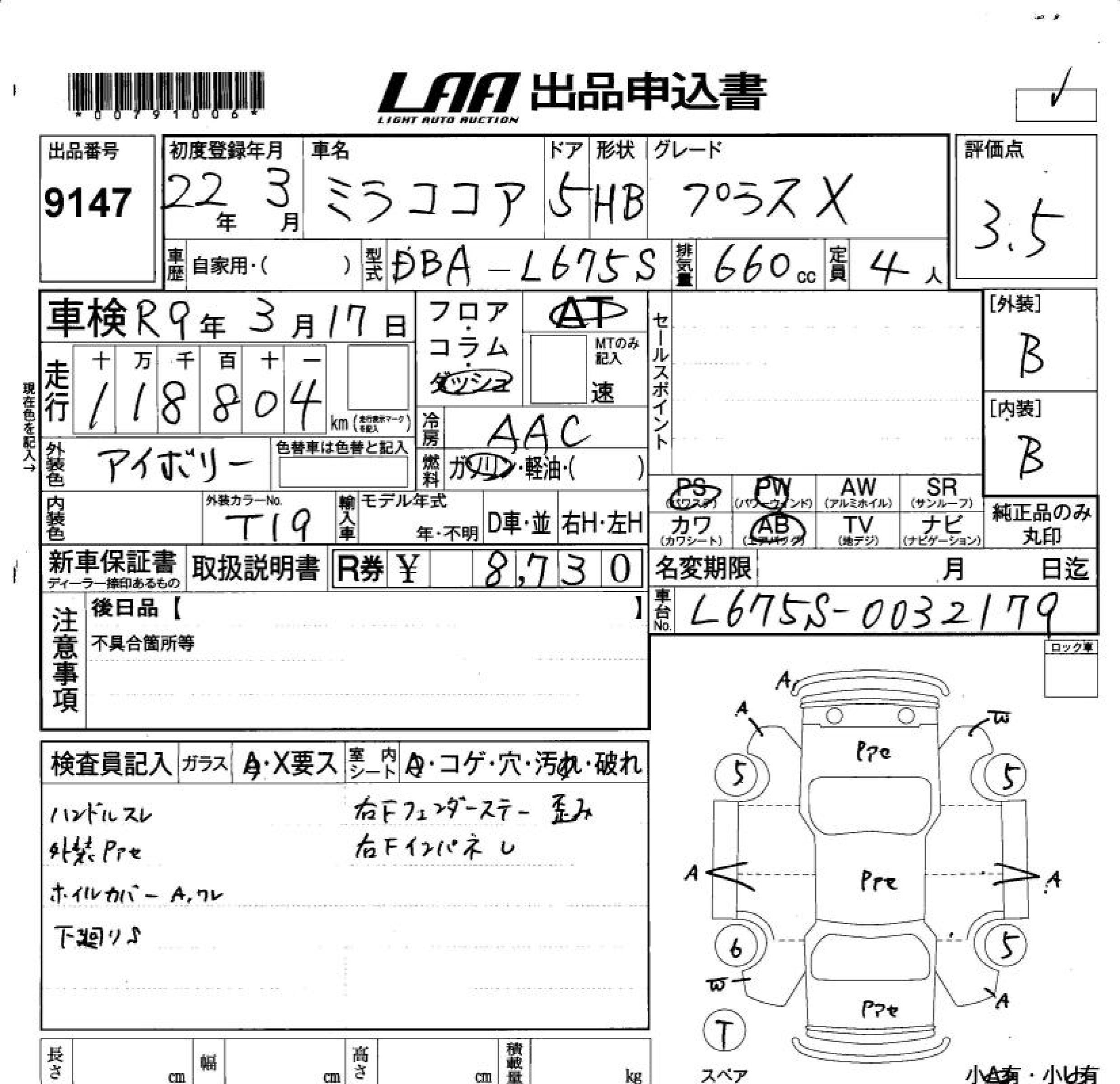 DAIHATSU MIRA COCOA - лот 9147