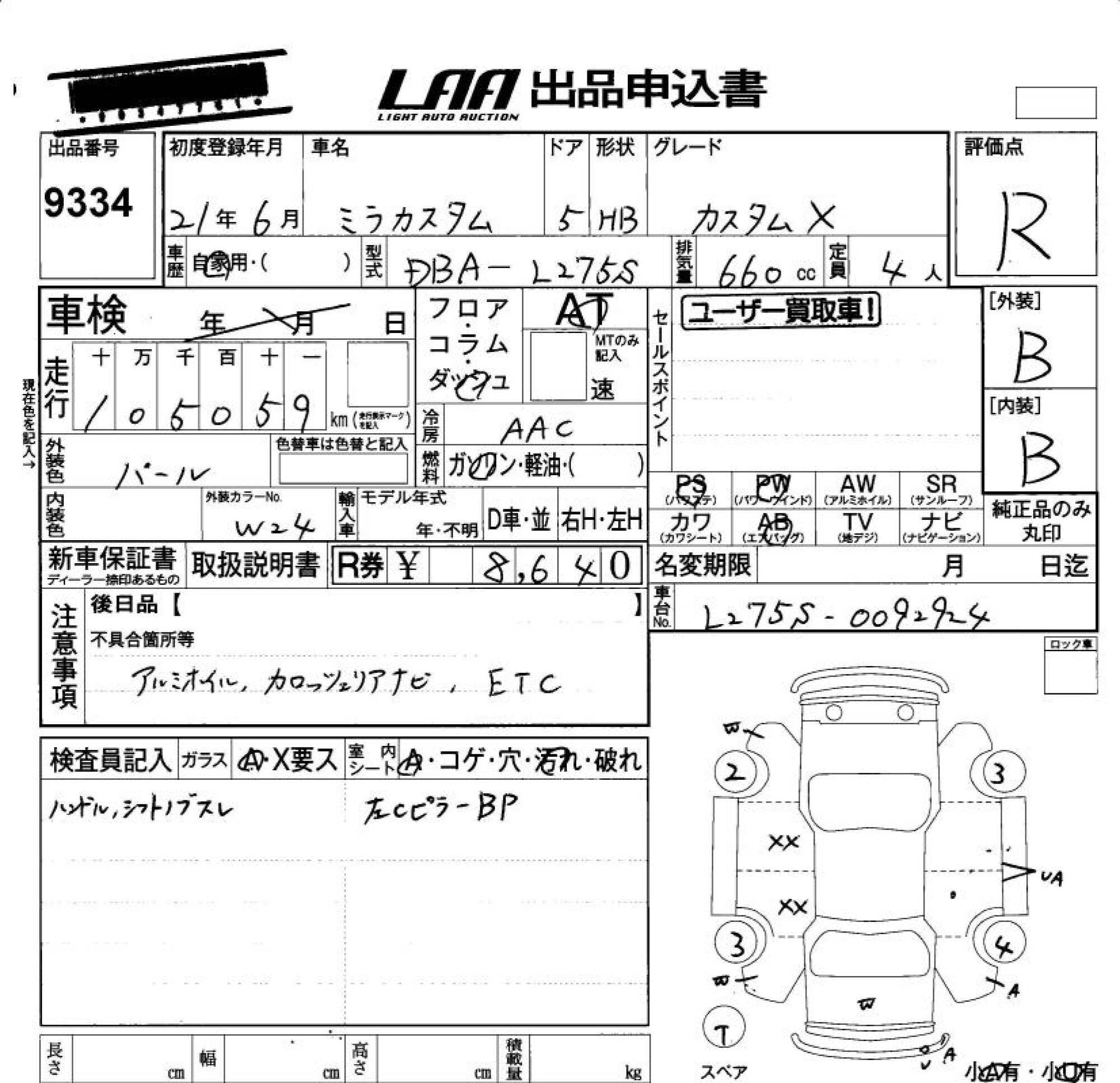 DAIHATSU MIRA CUSTOM - лот 9334