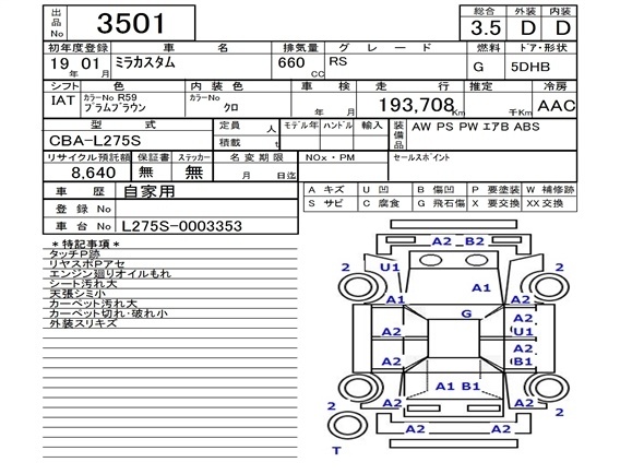 DAIHATSU MIRA CUSTOM - лот 3501