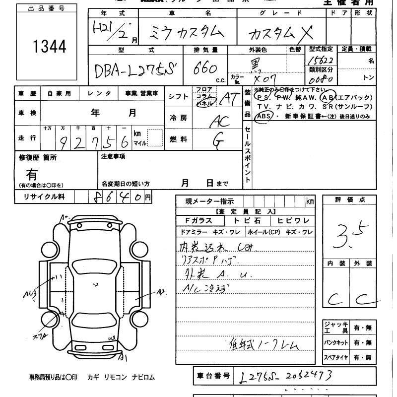 DAIHATSU MIRA CUSTOM - лот 1344