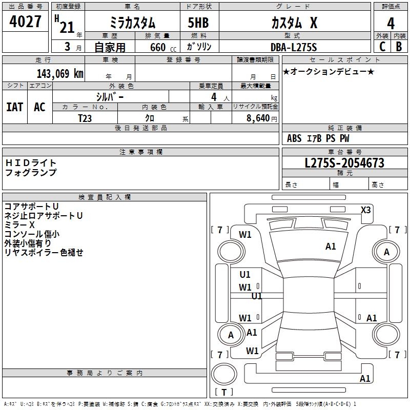 DAIHATSU MIRA CUSTOM - лот 4027