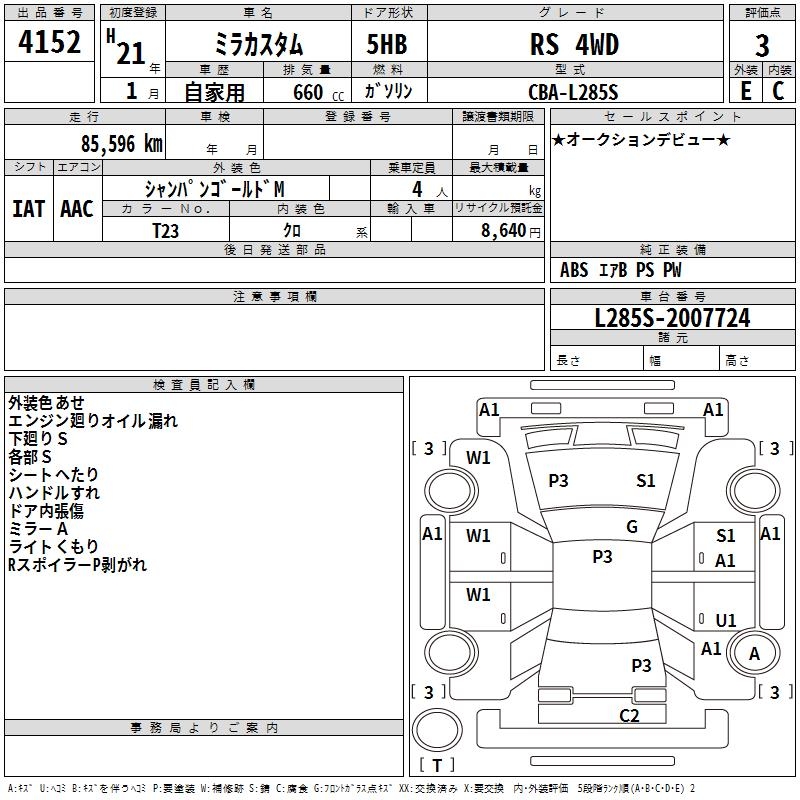 DAIHATSU MIRA CUSTOM - лот 4152